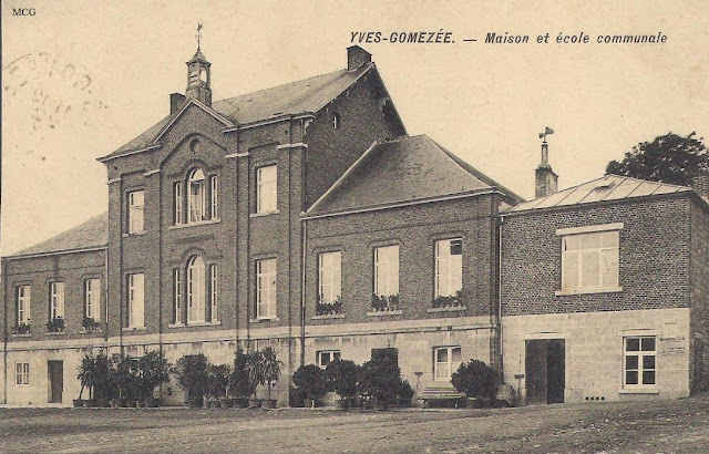1912. La maison communale et l'école des garçons. (Collection MC Guidosse)